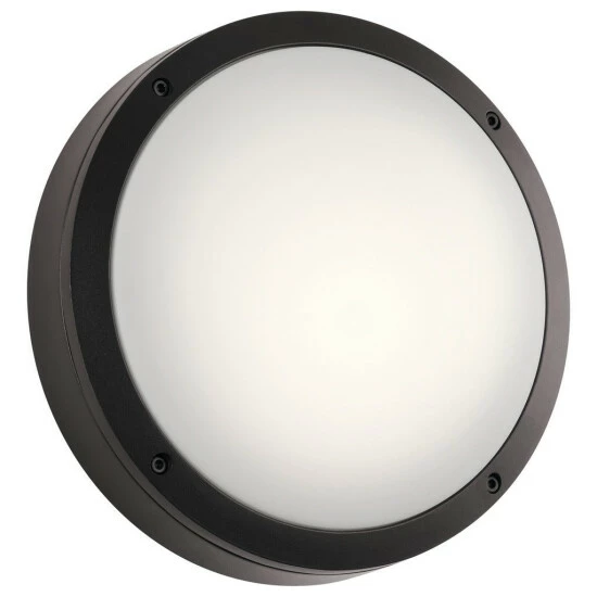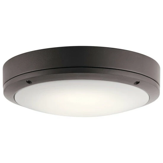 This 1-light LED wall sconce/flush mount features a textured architectural bronze finish that will complement many utilitarian and transitional decors. The white polycarbonate diffuser softens the light creating an inviting atmosphere and completes this simple yet functional design. This LED wall sconce showcases a white polycarbonate diffuser and textured architectural bronze finish. Product can be installed on the wall or ceiling for maximum versatility. The 1220 delivered Lumens is equivalent to around a 80 W Incandescent bulb. Dimensions: 3 inches high x 11 inches wide x 3 inches deep. Turn on our fixtures, and watch your room transform even more. From lighting to ceiling fans Kichler collections are built around our simple philosophy of bringing you the effect you want for your home or business. Our collections coordinate from room-to-room, or let you mix and match from wall-to-ceiling. And each fixture is designed to deliver a stunning quality of light that makes your space more beautiful and more livable. As one of the largest, privately held residential lighting fixture companies in North America, we’re constantly working to create innovative and on-trend decorative products as well as knowledgeable support. Since 1938, we’ve been creating products that are not only well designed, but also practical. We invest millions of dollars each year in design, technology and testing to assure that we’re offering distributors, designers, installers and homeowners not only innovative technologies – but also fixtures that perform efficiently, install intuitively and deliver a premium source of light. This philosophy holds true for everything we create – from our wide variety of decorative fixtures to our award-winning landscape lighting to our ceiling fans.