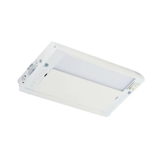 - 120V, 8″ 3000K LED 4 Watt under cabinet light in with frosted diffuser and Textured White finish