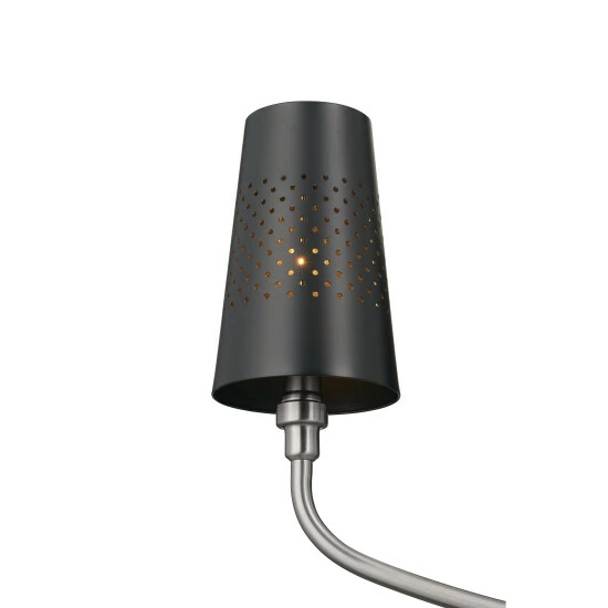 The Adeena collection illuminates in true elegance. As light delicately streams through its perforated shades, its glow instantly warms your space. As light delicately escapes Adeena’s elegantly perforated, black metal shades, it warms in romantic elegance. Its preassembled classic pewter stems are connected by links, giving it a unique detail while allowing you to easily adjust its height. Shades remove for easy cleaning.