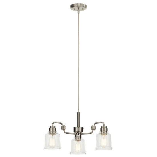 - The Aivian 22.75 inch 3 light chandelier features industrialstyle arms in an upscale Brushed Nickel finish and Clear Glass shades