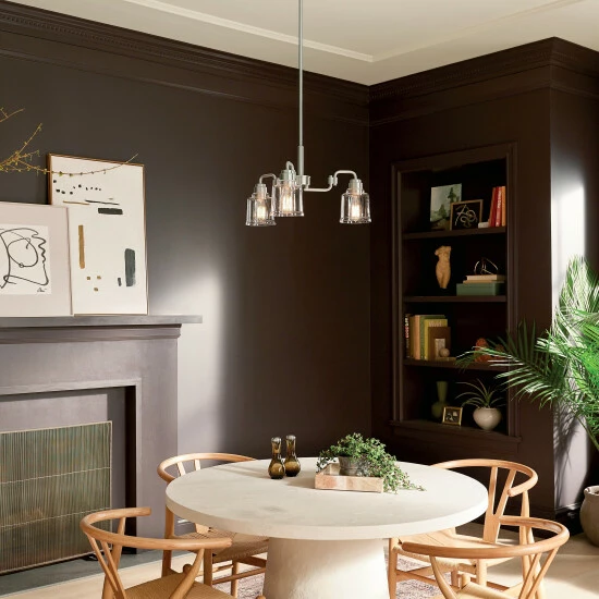 - The Aivian 22.75 inch 3 light chandelier scoffs at cliches with its industrialstyle arms in an upscale Brushed Nickel finish and stacked detail that’s a welcome surprise