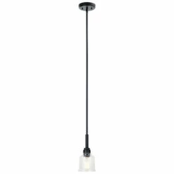 - The Aivian 5.25 inch 1 light pendant features an upscale Black finish, edgy details, and wide Clear Glass shades