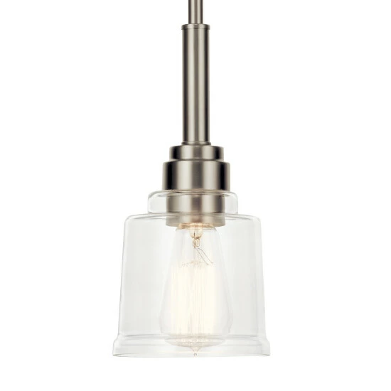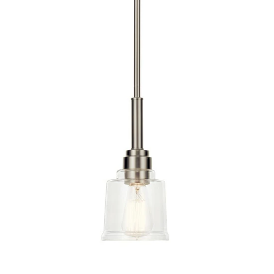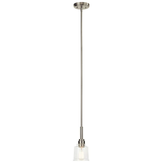 - The Aivian 5.25 inch 1 light pendant features an upscale Brushed Nickel finish, edgy details, and wide Clear Glass shades