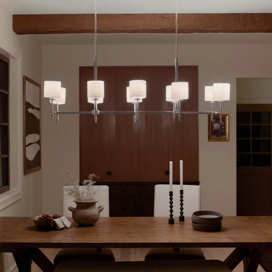 The Ali collection brings classic lines and subtle details to create timeless fixtures that make a simple yet stylish impression. The Ali linear chandelier combines classic lines and subtle details with clean shades for a truly updated look. From these small details to the stepped canopy, Ali is continuous style. It’s timeless, elegant, and versatile.