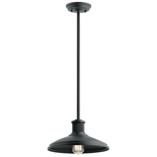 This Allenbury collection 1-light convertible outdoor pendant/semi-flush mount features a textured black finish that will complement many lodge, country, and rustic decors. The clean lines and matching shade adds interest, completing this simple yet functional outdoor design.