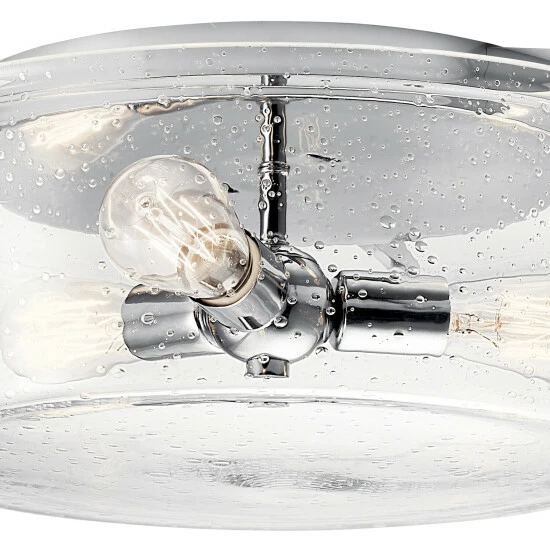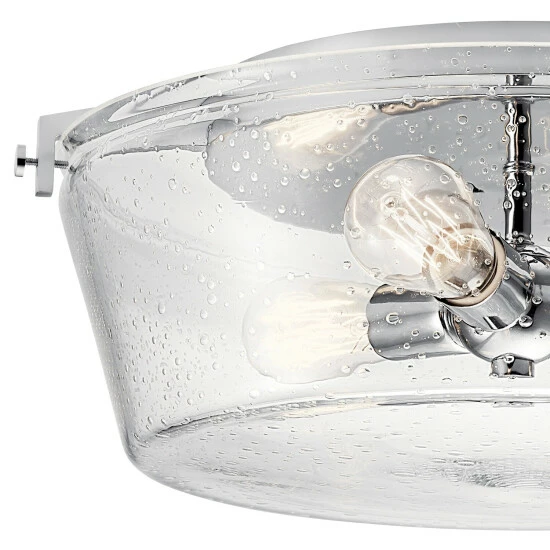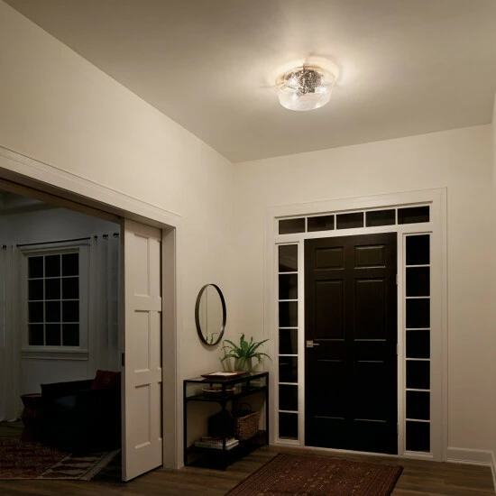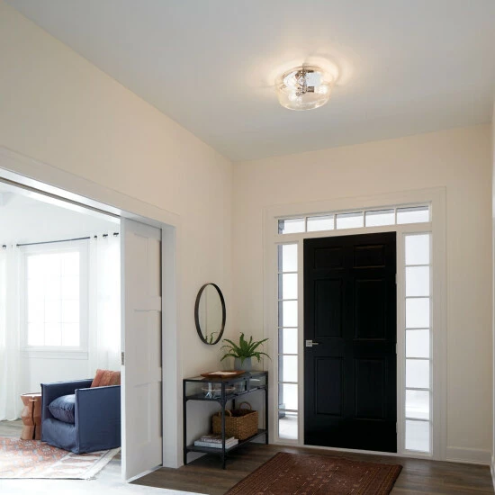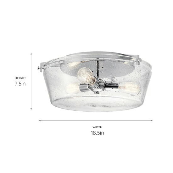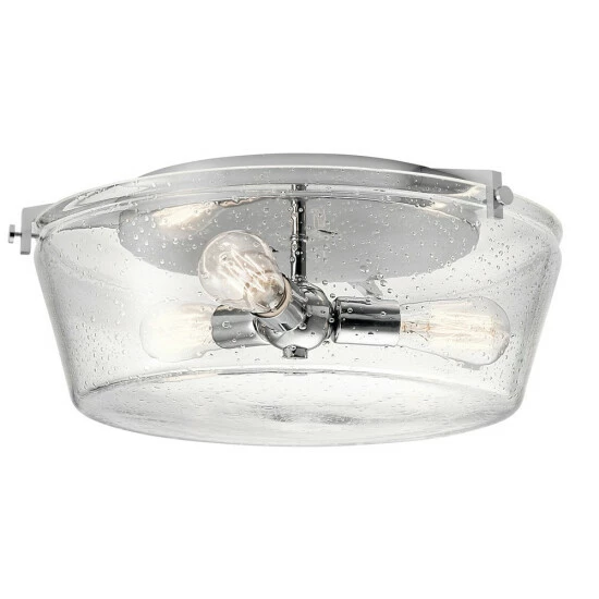 This Alton collection 3-light flush mount features a chrome finish that will complement many contemporary and modern decors. The clear seeded glass shade surrounding the bulb cluster adds interest while allowing the light to bounce in different ways. The Alton flush mount ceiling light in chrome combines industrial-era detailing and soft modern style. While it’s “nuts and bolt” hardware accents create a look that works in both traditional or modern decors. Dimensions: 7.5 inches high x 18.5 inch diameter. Turn on our fixtures, and watch your room transform even more. From lighting to ceiling fans Kichler collections are built around our simple philosophy of bringing you the effect you want for your home or business. Our collections coordinate from room-to-room, or let you mix and match from wall-to-ceiling. And each fixture is designed to deliver a stunning quality of light that makes your space more beautiful and more livable. As one of the largest, privately held residential lighting fixture companies in North America, we’re constantly working to create innovative and on-trend decorative products as well as knowledgeable support. Since 1938, we’ve been creating products that are not only well designed, but also practical. We invest millions of dollars each year in design, technology and testing to assure that we’re offering distributors, designers, installers and homeowners not only innovative technologies – but also fixtures that perform efficiently, install intuitively and deliver a premium source of light. This philosophy holds true for everything we create – from our wide variety of decorative fixtures to our award-winning landscape lighting to our ceiling fans.