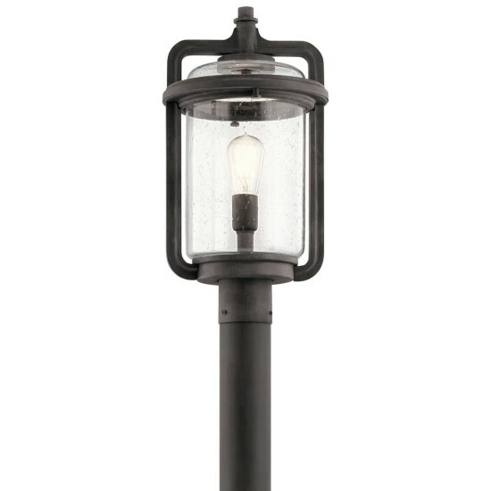This Andover collection 1-light outdoor post mount features a weathered zinc finish that will complement many lodge, country, and rustic decors. Clean lines and a classic design add interest while the clear seeded glass shade allows the light to bounce and provides a unique look for your outdoor decor.
