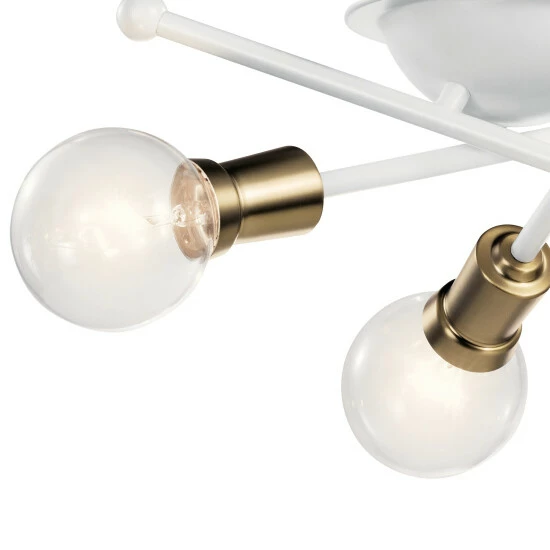 This Mid-Century 3-light flush mount in Matte White from the Armstrong collection features a in.sputnikin. design.