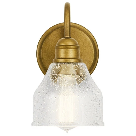 Create a masterpiece with this 1 light wall sconce from the Avery collection. In a Natural Brass finish with Clear Seeded glass.