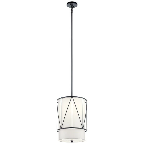 The Birkleigh 18.25″ 1 light pendant with satin etched glass features a simple geometric overlay pattern adds dimension and visual interest with its Black finish. A perfect addition in several aesthetic environments, including traditional and modern. The Birkleigh 1 light pendant with satin etched glass in Black finish offers a unique geometric pattern that adds dimension and visual interest to any room. This pendant uses 100 watt (max.) bulb equivalent, measures 12″ in width with a body height of 18.25″.