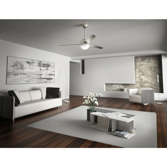 This 56-inch, 3 blade ceiling fan from the Bisc collection features a polished nickel finish that will subtly highlight the existing decor in your home. This attractive fan will complement many contemporary and modern decors. The seamless globe and fan combination of this Bisc collection ceiling fan in polished nickel, assures balanced airflow in a style that’s elegant and understated. The 3 blades are pitched 14 degrees and are reversible with your choice of a silver or black finish. The 188MM X 10MM Motor will provide the quiet power you need. This fan comes complete with a 6 Speed DC Wall Control System. Dimensions: 16.5 inches high x 56 inch diameter. Turn on our fixtures, and watch your room transform even more. From lighting to ceiling fans Kichler collections are built around our simple philosophy of bringing you the effect you want for your home or business. Our collections coordinate from room-to-room, or let you mix and match from wall-to-ceiling. And each fixture is designed to deliver a stunning quality of light that makes your space more beautiful and more livable. As one of the largest, privately held residential lighting fixture companies in North America, we’re constantly working to create innovative and on-trend decorative products as well as knowledgeable support. Since 1938, we’ve been creating products that are not only well designed, but also practical. We invest millions of dollars each year in design, technology and testing to assure that we’re offering distributors, designers, installers and homeowners not only innovative technologies – but also fixtures that perform efficiently, install intuitively and deliver a premium source of light. This philosophy holds true for everything we create – from our wide variety of decorative fixtures to our award-winning landscape lighting to our ceiling fans.