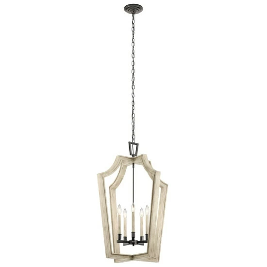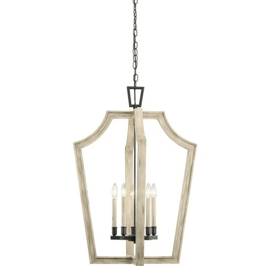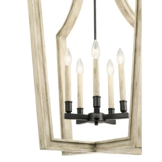 This Botanica collection 5-light chandelier features a beautifully hand painted anvil iron and white washed wood finish that will complement many transitional decors throughout your home. The clean lines and detail of the faux wood frame add interest completing this very interesting design. Clean and modern, without being understated, the chandelier from the Botanica collection delivers a soft farmhouse look that works beautifully against muted tones and interior decor. Whitewashed faux wood arms feature tailored Anvil Iron details and squared edges that bring the feel of a spring heirloom garden indoors.