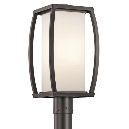 This Bowen collection 1-light outdoor post lantern features an architectural bronze finish that will complement many transitional decors. Clean lines of the aluminum frame add interest while the satin etched opal glass shade provides a welcoming glow. Make your outdoor space come alive with the warmth of the Bowen(TM) collection. This post lantern has clean lines to create a versatile outdoor accent that can complement a variety of decor styles. With a rich architectural bronze(TM) finish and satin etched opal glass, the Bowen(TM) collection is a sure standout as the epitome of robustness. Post not included. Dimensions: 18.5 inches high x 9 inch diameter. Turn on our fixtures, and watch your room transform even more. From lighting to ceiling fans Kichler collections are built around our simple philosophy of bringing you the effect you want for your home or business. Our collections coordinate from room-to-room, or let you mix and match from wall-to-ceiling. And each fixture is designed to deliver a stunning quality of light that makes your space more beautiful and more livable. As one of the largest, privately held residential lighting fixture companies in North America, we’re constantly working to create innovative and on-trend decorative products as well as knowledgeable support. Since 1938, we’ve been creating products that are not only well designed, but also practical. We invest millions of dollars each year in design, technology and testing to assure that we’re offering distributors, designers, installers and homeowners not only innovative technologies – but also fixtures that perform efficiently, install intuitively and deliver a premium source of light. This philosophy holds true for everything we create – from our wide variety of decorative fixtures to our award-winning landscape lighting to our ceiling fans.