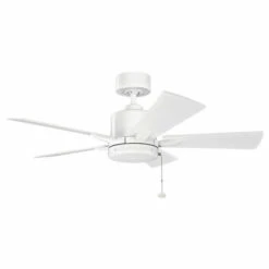 Circulate air throughout your kitchen with this Kichler Lighting 42-inch ceiling fan. Five blades with a 14-degree pitch cover a wide-ranging area for increased coverage, while the pull chain lets you cycle the quiet motor through four settings. This UL Listed ceiling fan features a matte white finish, giving the area a transitional look.