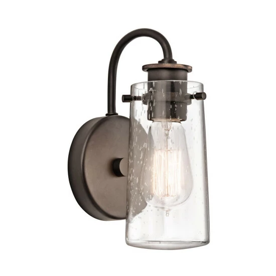 This Braelyn collection 1-light wall sconce features an olde bronze finish that will complement many urban, loft, and transitional decors. The clear seeded glass surrounding the Edison style bulb adds interest while allowing the light to bounce in different ways. There’s so much to love about the reclaimed style from the Braelyn collection. The vintage industrial design is punctuated with Clear Seedy Glass shades, reminiscent of glass jars that were a staple of 19th century American life.
