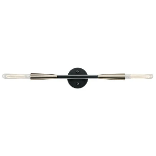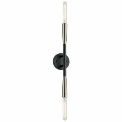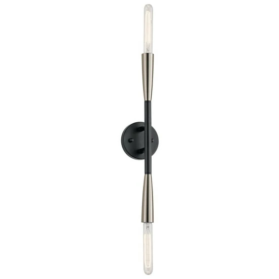 This Branches collection 2-light wall sconce features a black finish that will complement many contemporary and modern decors. Clean lines of the steel frame add interest while the exposed bulbs on either end of the frame provide ample lighting for any space.