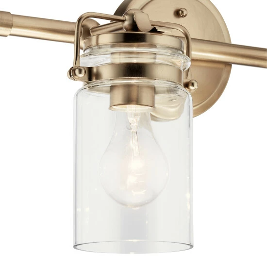 Brinley 15.75 inch 2 light vanity light features a vintage look with its Champagne Bronze finish and clear glass. Inspired by mason jars, the Brinley vanity light is perfect in several aesthetic environments, including vintage and transitional. Think of it as a foundation or a canvas upon which to paint a distinctive lighting picture.