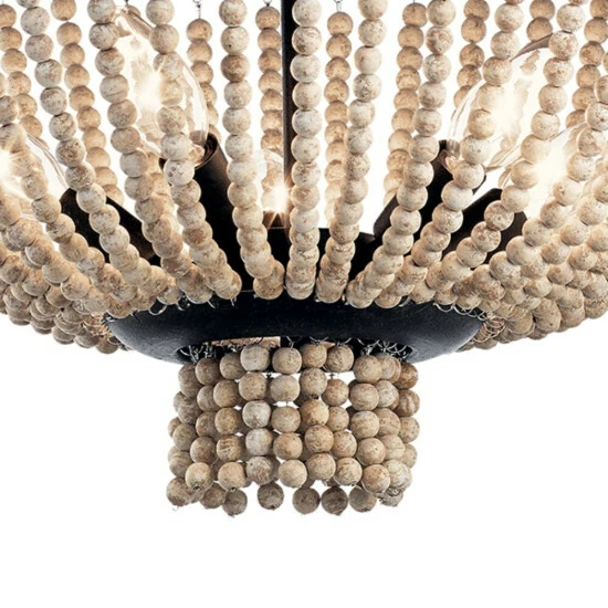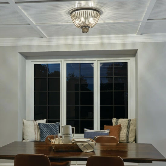 This Brisbane collection 5-light flush mount features a distressed black finish that will complement many transitional decors. The basket shaped wooden beads surrounding the bulb cluster adds interest and gives the light a unique look. A little bit elegant, a little bit rustic, the Brisbane collection allows you to bring pretty detailing to a room without overdoing it. The unique basket shaped styles feature distressed antique white beads set against a distressed black finish, for a chic look that’s as elegant as it is casual. Dimensions: 11 inches high x 18 inch diameter. Turn on our fixtures, and watch your room transform even more. From lighting to ceiling fans Kichler collections are built around our simple philosophy of bringing you the effect you want for your home or business. Our collections coordinate from room-to-room, or let you mix and match from wall-to-ceiling. And each fixture is designed to deliver a stunning quality of light that makes your space more beautiful and more livable. As one of the largest, privately held residential lighting fixture companies in North America, we’re constantly working to create innovative and on-trend decorative products as well as knowledgeable support. Since 1938, we’ve been creating products that are not only well designed, but also practical. We invest millions of dollars each year in design, technology and testing to assure that we’re offering distributors, designers, installers and homeowners not only innovative technologies – but also fixtures that perform efficiently, install intuitively and deliver a premium source of light. This philosophy holds true for everything we create – from our wide variety of decorative fixtures to our award-winning landscape lighting to our ceiling fans.