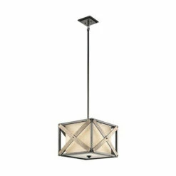 This Cahoon collection 1-light convertible pendant/semi-flush mount features an anvil iron finish that will complement many lodge, country, and rustic decors. Clean lines of the steel frame add interest while the beige linen shade softens the light creating a warm ambiance for any space. This rustic convertible pendant/semi-flush ceiling light from the Cahoon collection incorporates natural materials and colors to create a subtle and beautiful aesthetic. The Anvil Iron finish coupled with Distressed Antique Grey accents are the perfect compliment to the beige linen shades.