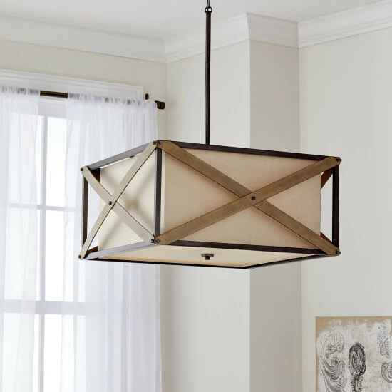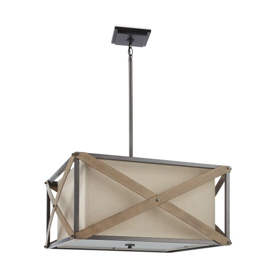 This Cahoon collection 4-light convertible pendant/semi flush mount features an anvil iron finish that will complement many lodge, country, and rustic decors. Clean lines of the steel frame add interest while the linen shade and glass diffuser softens the light. This rustic convertible pendant/semi-flush ceiling light from the Cahoon collection incorporates natural materials and colors to create a subtle and beautiful aesthetic. The anvil iron finish coupled with distressed antique grey accents are the perfect compliment to the beige linen shades. All necessary harware is included to convert this piece to a semi flush mount. This piece includes 36 inches of stems and 105 inches of wire so it can be hung at your desired height (Up to 52 inches). Dimensions: 12.75 inches high x 25.75 inch diameter. Turn on our fixtures, and watch your room transform even more. From lighting to ceiling fans Kichler collections are built around our simple philosophy of bringing you the effect you want for your home or business. Our collections coordinate from room-to-room, or let you mix and match from wall-to-ceiling. And each fixture is designed to deliver a stunning quality of light that makes your space more beautiful and more livable. As one of the largest, privately held residential lighting fixture companies in North America, we’re constantly working to create innovative and on-trend decorative products as well as knowledgeable support. Since 1938, we’ve been creating products that are not only well designed, but also practical. We invest millions of dollars each year in design, technology and testing to assure that we’re offering distributors, designers, installers and homeowners not only innovative technologies – but also fixtures that perform efficiently, install intuitively and deliver a premium source of light. This philosophy holds true for everything we create – from our wide variety of decorative fixtures to our award-winning landscape lighting to our ceiling fans.