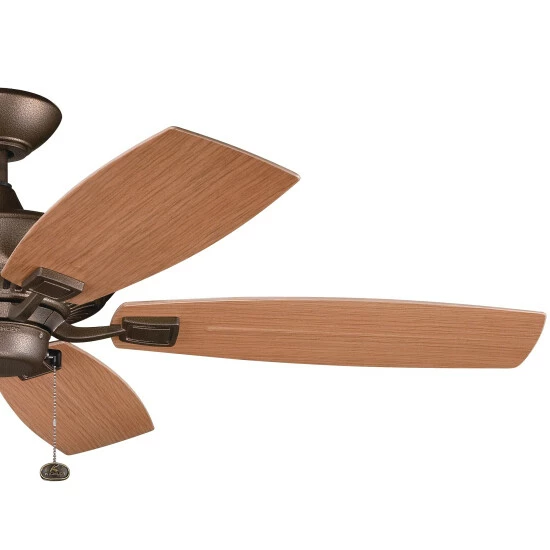 This Canfield Patio collection 52-inch, 5 blade ceiling fan features a weathered copper powder coat finish that will subtly highlight the existing decor in your home. This attractive fan will complement many classic, transitional and traditional decors. Featuring a traditional silhouette with classic detailing that tastefully accents your home. The blades are pitched at 14 degrees, are fully reversible, and have a light or dark walnut finish. The 172mm x 20mm Motor will provide the quiet power you need. This fan comes complete with a pull chain (3 speeds forward and reverse). Dimensions: 13.25 inches high x 52 inch diameter. Turn on our fixtures, and watch your room transform even more. From lighting to ceiling fans Kichler collections are built around our simple philosophy of bringing you the effect you want for your home or business. Our collections coordinate from room-to-room, or let you mix and match from wall-to-ceiling. Each fixture is designed to deliver a stunning quality of light that makes your space more beautiful and more livable. As one of the largest, privately held residential lighting fixture companies in North America, we’re constantly working to create innovative and on-trend decorative products as well as knowledgeable support. Since 1938, we’ve been creating products that are not only well designed, but also practical. We invest millions of dollars each year in design, technology and testing to assure that we’re offering distributors, designers, installers and homeowners not only innovative technologies – but also fixtures that perform efficiently, install intuitively and deliver a premium source of light. This philosophy holds true for everything we create – from our wide variety of decorative fixtures to our award-winning landscape lighting to our ceiling fans.