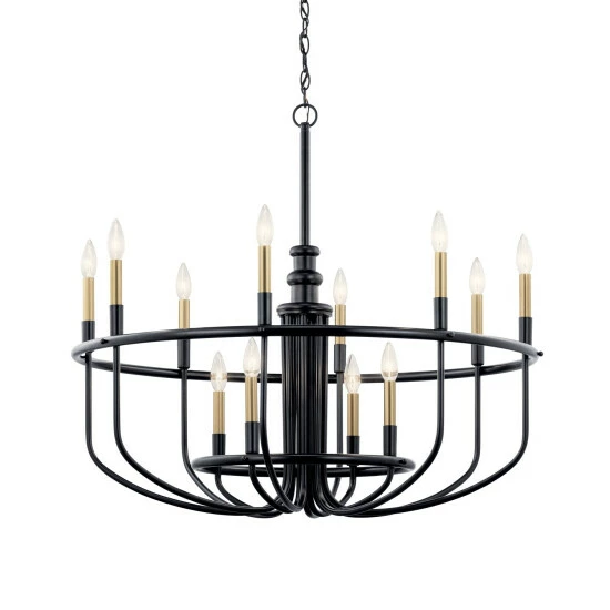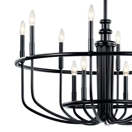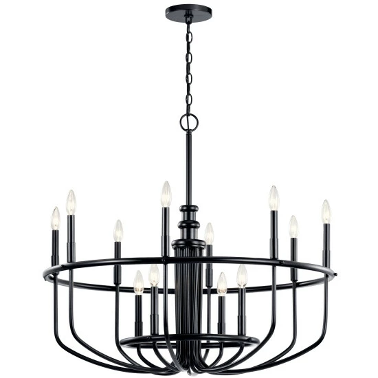 - 30.75″, twelve light chandelier in Black finish.
