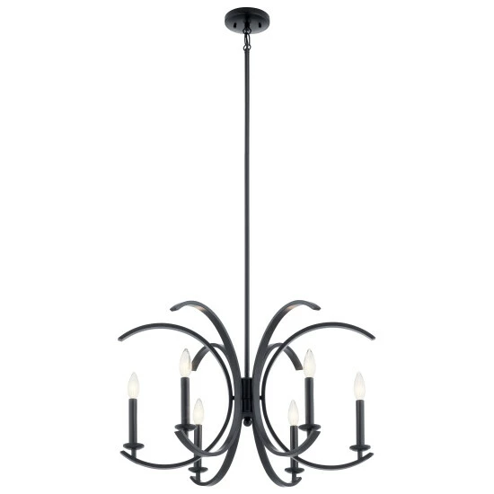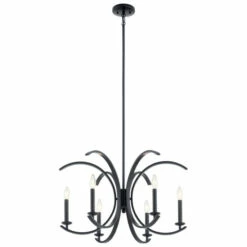 The Cassadee 16.5″ 6 light chandelier creates a fluid movement with its metal work in Black finish. A perfect addition in several aesthetic environments, including traditional, transitional and contemporary. The Cassadee 6 light chandelier in Black finish delivers a graceful flow with its curved, metalwork open design. This chandelier uses a 60 watt (max.) candelabra bulb equivalent and measures 26″ in width with a body height of 16.5″.