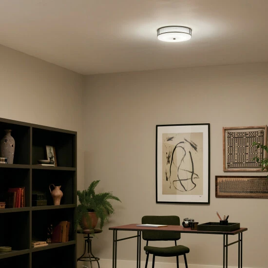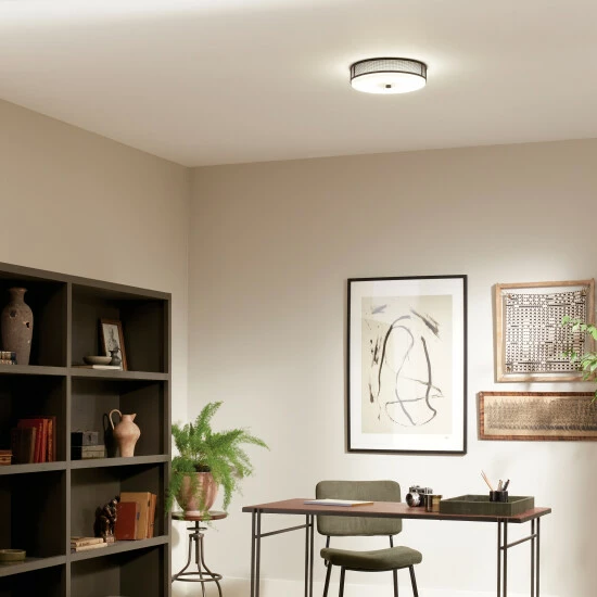 This beautiful LED flush mount features clean lines and a crisscross metal cage. Coordinates with black accents in hardware, mirrors, picture frames and architectural elements. The Black finish pops against exposed brick, concrete and steel element in minimal, uncluttered spaces.