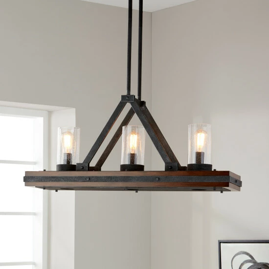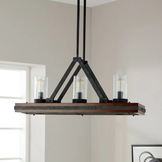 Light up the night with this Kichler Lighting chandelier. The steel construction lends this chandelier amazing strength and durability, while an auburn-stained finish and distressed black accents provide a rustic appearance. The chandelier design includes cylindrical glass shades that deliver an elegant finishing touch. This fixture includes 3 up lights and 3 down lights. It features a downlight and 3 way switch.