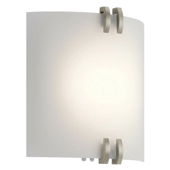 This 1-light LED wall sconce features a brushed nickel finish that will complement many contemporary and modern decors. The white acrylic diffuser softens the light creating an inviting atmosphere completing this simple yet functional design. Dimensions: 11.75 inches high x 11 inches wide x 4 inches deep. Turn on our fixtures, and watch your room transform even more. From lighting to ceiling fans Kichler collections are built around our simple philosophy of bringing you the effect you want for your home or business. Our collections coordinate from room-to-room, or let you mix and match from wall-to-ceiling. And each fixture is designed to deliver a stunning quality of light that makes your space more beautiful and more livable. As one of the largest, privately held residential lighting fixture companies in North America, we’re constantly working to create innovative and on-trend decorative products as well as knowledgeable support. Since 1938, we’ve been creating products that are not only well designed, but also practical. We invest millions of dollars each year in design, technology and testing to assure that we’re offering distributors, designers, installers and homeowners not only innovative technologies – but also fixtures that perform efficiently, install intuitively and deliver a premium source of light. This philosophy holds true for everything we create – from our wide variety of decorative fixtures to our award-winning landscape lighting to our ceiling fans.