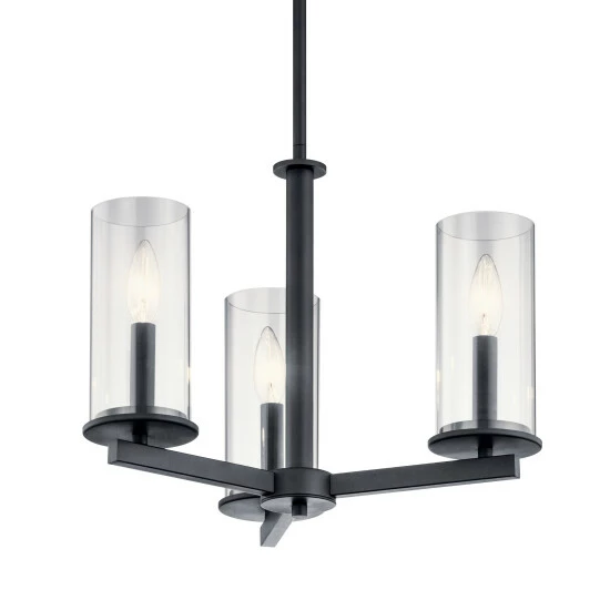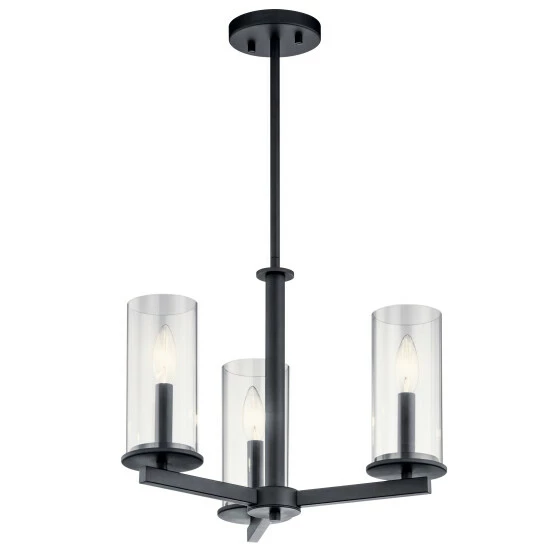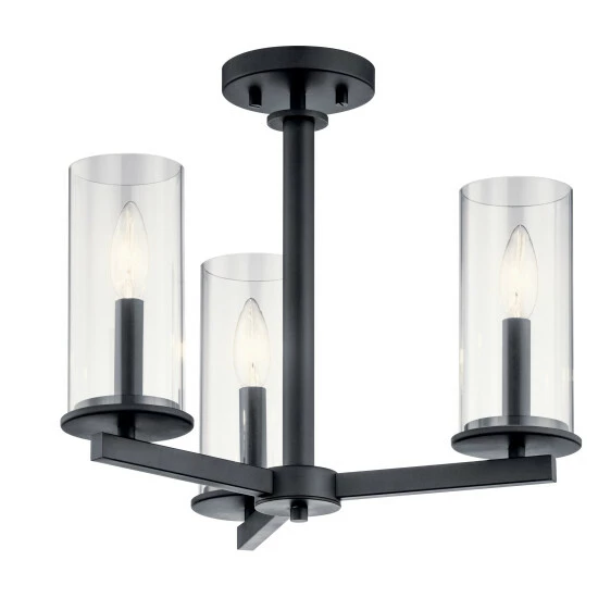 Streamlined and simple, This Crosby 3 light convertible mini chandelier/semi flush ceiling light in Black delivers clean lines for a contemporary style. The clear glass shades enhance this minimalistic design.