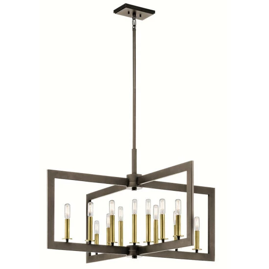 This Cullen collection 13-light linear chandelier features an olde bronze finish that will complement many transitional decors. Clean lines of intersecting rectangular frame add interest while the exposed bulbs provide ample lighting to all spaces. The transitional lantern style of this large chandelier from the Cullen collection in an olde bronze finish features adjustable rotating arms allowing you to create your own sleek, linear design. This piece includes 36 inches of stems and 66 inches of wire so it can be hung at your desired height (Up to 61 inches). Dimensions: 22.25 inches high x 38.75 inch diameter. Turn on our fixtures, and watch your room transform even more. From lighting to ceiling fans Kichler collections are built around our simple philosophy of bringing you the effect you want for your home or business. Our collections coordinate from room-to-room, or let you mix and match from wall-to-ceiling. And each fixture is designed to deliver a stunning quality of light that makes your space more beautiful and more livable. As one of the largest, privately held residential lighting fixture companies in North America, we’re constantly working to create innovative and on-trend decorative products as well as knowledgeable support. Since 1938, we’ve been creating products that are not only well designed, but also practical. We invest millions of dollars each year in design, technology and testing to assure that we’re offering distributors, designers, installers and homeowners not only innovative technologies – but also fixtures that perform efficiently, install intuitively and deliver a premium source of light. This philosophy holds true for everything we create – from our wide variety of decorative fixtures to our award-winning landscape lighting to our ceiling fans.