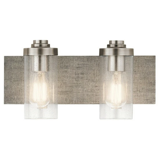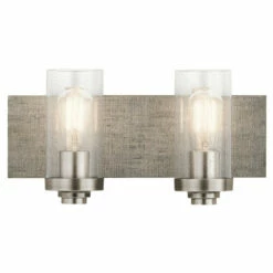 This Dalwood collection 2-light bath/vanity light features a classic pewter finish that will complement many lodge, country, and rustic decors. Clean lines of the steel frame add interest while the clear seeded glass shades give a unique look for any bathroom or vanity space.