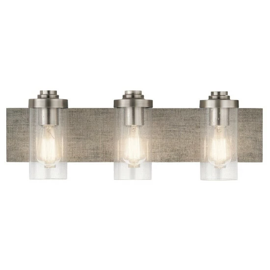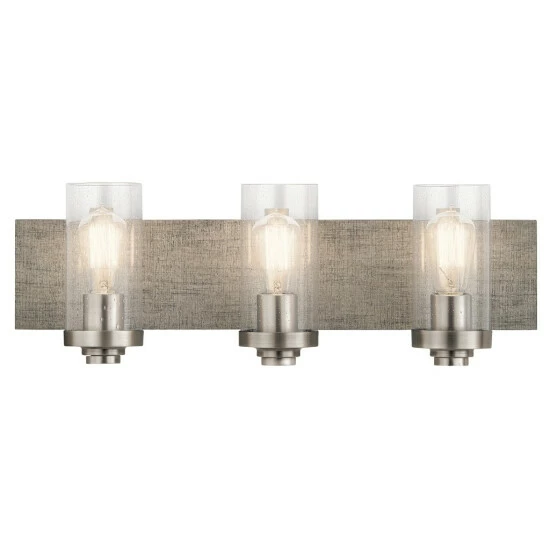 This Dalwood collection 3-light bath/vanity light features a classic pewter finish that will complement many lodge, country, and rustic decors. Clean lines of the steel frame add interest while the clear seeded glass shades give a unique look for any bathroom or vanity space.