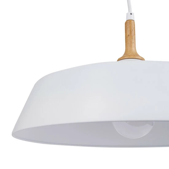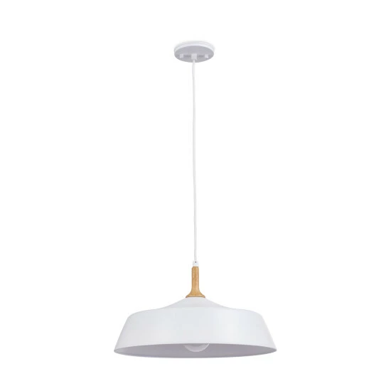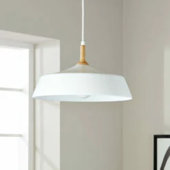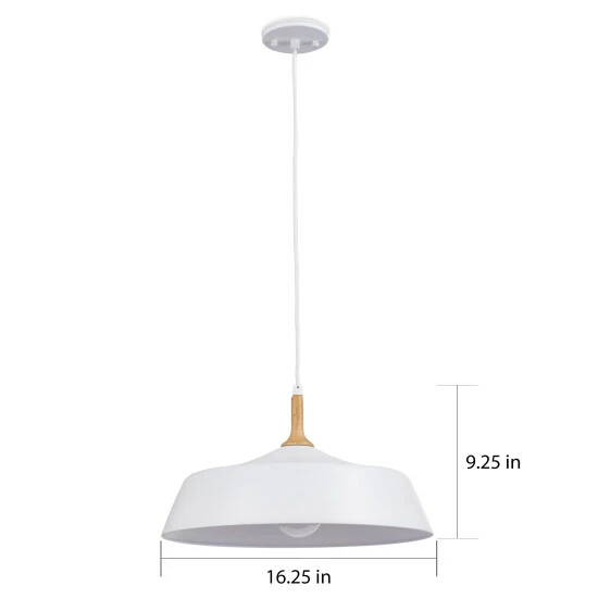 This Danika collection 1-light pendant features a white finish that will complement many transitional decors. The wood accent adds texture and interest and completes this simple yet functional design. This pendant from the Danika collection takes the concept of mid-century modern to a new level. This piece includes enough wire to hang at your desired height (up to 115 inches). Dimensions: 9.25 inches high x 16.25 inch diameter. Turn on our fixtures, and watch your room transform even more. From lighting to ceiling fans Kichler collections are built around our simple philosophy of bringing you the effect you want for your home or business. Our collections coordinate from room-to-room, or let you mix and match from wall-to-ceiling. And each fixture is designed to deliver a stunning quality of light that makes your space more beautiful and more livable. As one of the largest, privately held residential lighting fixture companies in North America, we’re constantly working to create innovative and on-trend decorative products as well as knowledgeable support. Since 1938, we’ve been creating products that are not only well designed, but also practical. We invest millions of dollars each year in design, technology and testing to assure that we’re offering distributors, designers, installers and homeowners not only innovative technologies – but also fixtures that perform efficiently, install intuitively and deliver a premium source of light. This philosophy holds true for everything we create – from our wide variety of decorative fixtures to our award-winning landscape lighting to our ceiling fans.