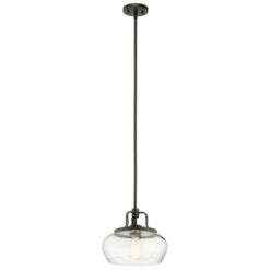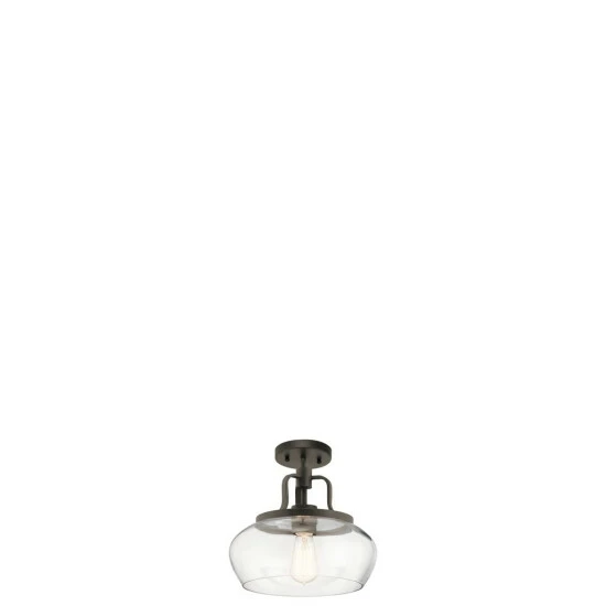 This Davenport collection 1-light convertible pendant/semi-flush mount features an olde bronze finish that will complement many transitional decors. The clean lines of the steel frame adds interest while the clear glass shade provides uninterrupted light to any space.