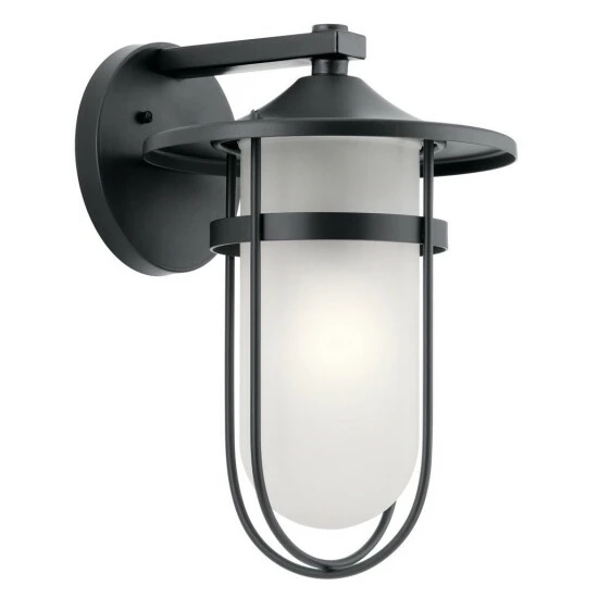 This Finn collection 1-light outdoor wall lantern features a black finish that will complement many transitional decors. Clean lines of the aluminum frame adds interest while a satin etched glass shade softens the light creating a warm welcoming glow. The Finn collection draws inspiration from classic lighthouse style. The curved etched glass topped with a captain’s cap brings a vintage nautical look to a home’s exterior. Dimensions: 16.25 inches high x 11 inches wide x 12.25 inches deep. Turn on our fixtures, and watch your room transform even more. From lighting to ceiling fans Kichler collections are built around our simple philosophy of bringing you the effect you want for your home or business. Our collections coordinate from room-to-room, or let you mix and match from wall-to-ceiling. And each fixture is designed to deliver a stunning quality of light that makes your space more beautiful and more livable. As one of the largest, privately held residential lighting fixture companies in North America, we’re constantly working to create innovative and on-trend decorative products as well as knowledgeable support. Since 1938, we’ve been creating products that are not only well designed, but also practical. We invest millions of dollars each year in design, technology and testing to assure that we’re offering distributors, designers, installers and homeowners not only innovative technologies – but also fixtures that perform efficiently, install intuitively and deliver a premium source of light. This philosophy holds true for everything we create – from our wide variety of decorative fixtures to our award-winning landscape lighting to our ceiling fans.