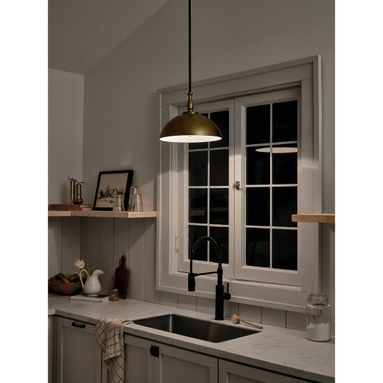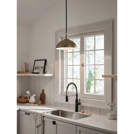 Inspired by the decorative spindles of antique furniture, the Fira collection celebrates traditional artistry. With warm dual finishes, Fira gives your space a cozy and elegant feeling. Celebrate traditional artistry with the Fira 14 inch 1 light pendant. The decorative spindle in Natural Brass resembles the spindle of antique furniture, and its Black shade gives it a rich vintage look. Adjust its height to your space.