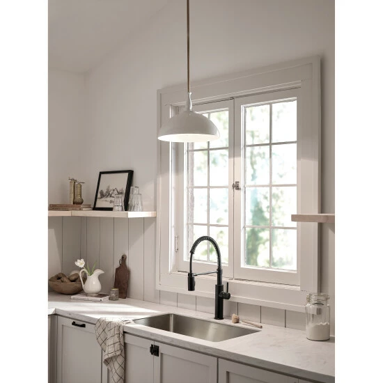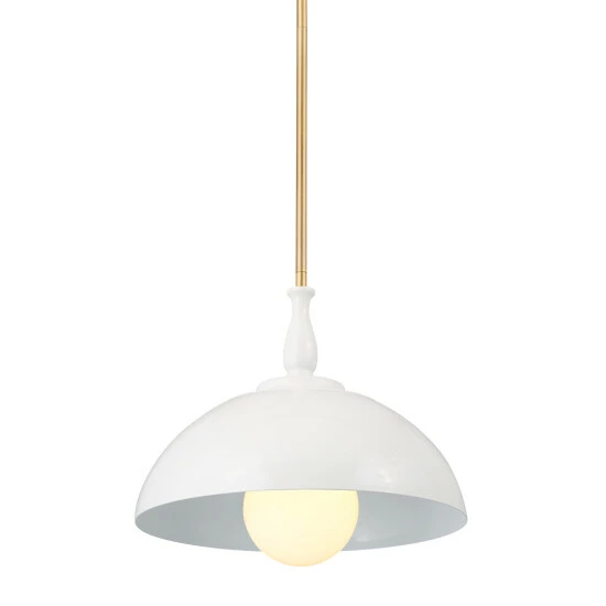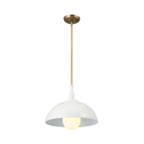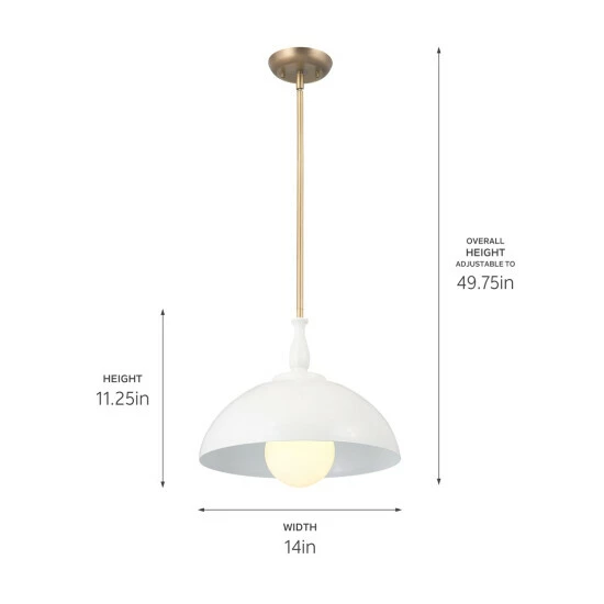 Inspired by the decorative spindles of antique furniture, the Fira collection celebrates traditional artistry. With warm dual finishes, Fira gives your space a cozy and elegant feeling. Celebrate traditional artistry with the Fira 14 inch 1 light pendant. The decorative spindle in Natural Brass resembles the spindle of antique furniture, and its White shade gives it a clean vintage look. Adjust its height to your space.