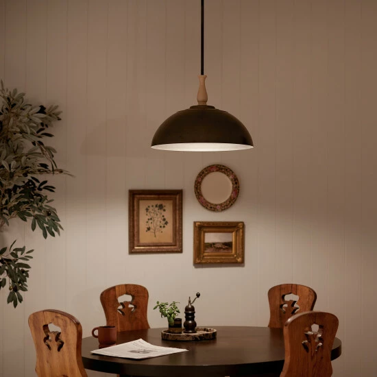 Inspired by the decorative spindles of antique furniture, the Fira collection celebrates traditional artistry. With warm dual finishes, Fira gives your space a cozy and elegant feeling. Celebrate traditional artistry with the Fira 18 inch 1 light pendant. The decorative spindle in Beech resembles the spindle of antique furniture, and its Anvil Iron shade gives it an elegant, vintage look. Adjust its height to your space.
