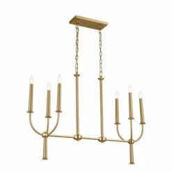 Inspired by 19th century antique candlesticks, the Florence collection is sheer elegance that transforms your space. Elegantly tapered candelabra lights and subtle decorative details make the Florence linear chandelier a must-have. Its simple, open design in a refined brushed natural brass finish make it timeless and versatile.