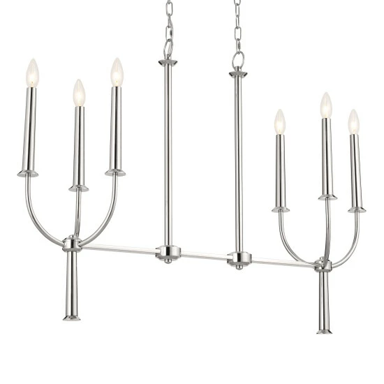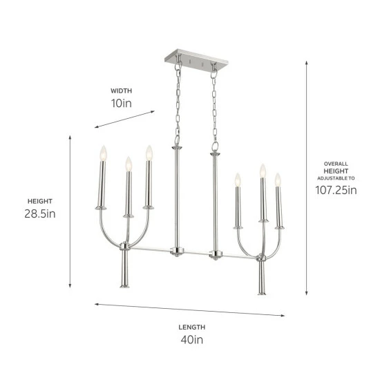 Inspired by 19th century antique candlesticks, the Florence collection is sheer elegance that transforms your space. Elegantly tapered candelabra lights and subtle decorative details make the Florence linear chandelier a must-have. Its simple, open design in a refined polished nickel finish make it timeless and versatile.