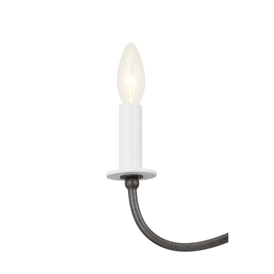 - White sleeves encase the candelabra bulbs for a cozy, vintage candlestick effect