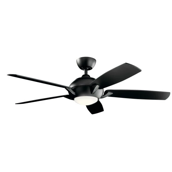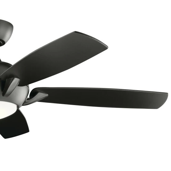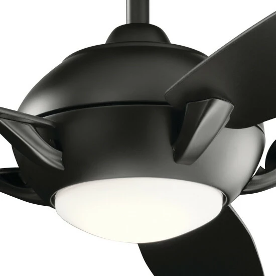 This transitionally styled, Satin Black ceiling fan from the Geno collection fits a range of decorating tastes. Attractive blade irons, integrated LED light kit and an included remote control operating system make this a great choice for your home.