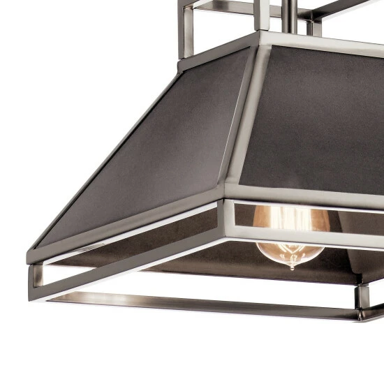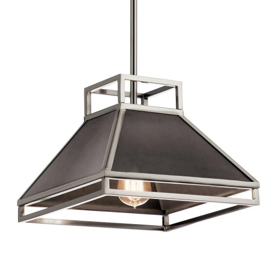 Inspired by the look of contemporary kitchen vent hoods, the Grendel collection adds visual interest while lighting a room for maximum effect. The open framework metal at the top and bottom assures strong downlight and moody up-light. The overall style and dual finishes work as well in a modern-farmhouse kitchen as they do in a vintage industrial loft.