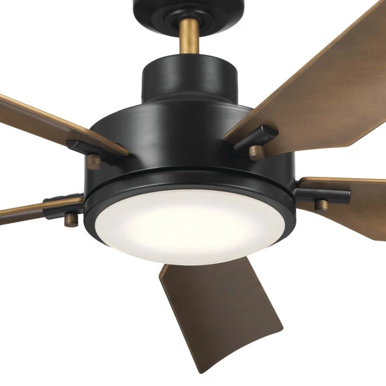 Inspired by old factory ceiling fans, the Guardian collection exudes modern simplicity. Guardian’s knurled details and classic finishes keep history alive and on-trend. Inspired by old factory industrial fans, the satin black Guardian features a knurled natural brass fitting to hold each blade in place. A gorgeous Etched Cased Opal glass diffuser encases its integrated LED light. Enjoy ideal comfort and illumination with a style that keeps history alive and on-trend.
