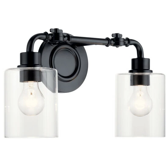 With adjustable hinges, the Gunnison 2-light bath vanity allows you to customize the light in your bath to focus on the areas you want to illuminate most. The fixture’s exposed hardware and luxe Black finish offer the perfect touches to your bathroom.