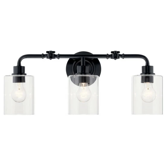 With adjustable hinges, the Gunnison 3-light bath vanity allows you to customize the light in your bath to focus on the areas you want to illuminate most. The fixture’s exposed hardware and luxe Black finish offer the perfect touches to your bathroom.