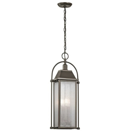 This Harbor Row collection 4-light outdoor pendant features an olde bronze finish that will complement many traditional decors. The clear seeded glass panels allow the light to bounce in different ways giving a unique look to your outdoor decor. This outdoor pendant from the Harbor Row collection has an updated traditional design inspired by classic carriage lanterns, featuring a clear, seeded glass for a highly textured appearance and brass candle accents for a warm glow. Dimensions: 25.75 inches high x 10.5 inch diameter. Turn on our fixtures, and watch your room transform even more. From lighting to ceiling fans Kichler collections are built around our simple philosophy of bringing you the effect you want for your home or business. Our collections coordinate from room-to-room, or let you mix and match from wall-to-ceiling. And each fixture is designed to deliver a stunning quality of light that makes your space more beautiful and more livable. As one of the largest, privately held residential lighting fixture companies in North America, we’re constantly working to create innovative and on-trend decorative products as well as knowledgeable support. Since 1938, we’ve been creating products that are not only well designed, but also practical. We invest millions of dollars each year in design, technology and testing to assure that we’re offering distributors, designers, installers and homeowners not only innovative technologies – but also fixtures that perform efficiently, install intuitively and deliver a premium source of light. This philosophy holds true for everything we create – from our wide variety of decorative fixtures to our award-winning landscape lighting to our ceiling fans.
