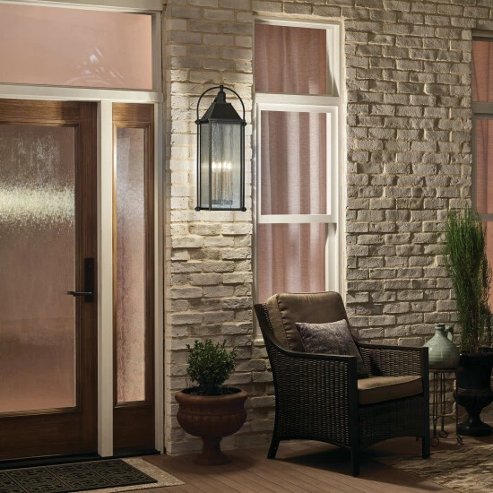 This breathtaking quad-light outdoor wall lantern features an old bronze finish that will complement many traditional decors. The clean lines of its aluminum frame add interest, while a seeded glass shade gives your outdoor sanctuary a pop of glam.